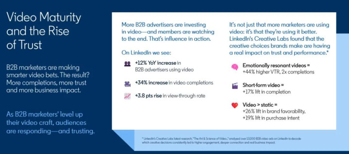 需要注意的是,报告进一步指出,影响者和视频之所以在B2B营销中表现优异,其核心原因在于它们共同构建了信任。视频内容可以帮助品牌“展示”而不仅仅是“讲述”,它传达情绪、快速传递价值,并以更人性化的方式呈现复杂的信息。在此基础上,影响者和创作者通过提升内容的可信度、相关性和真实性,进一步放大品牌的信任感。