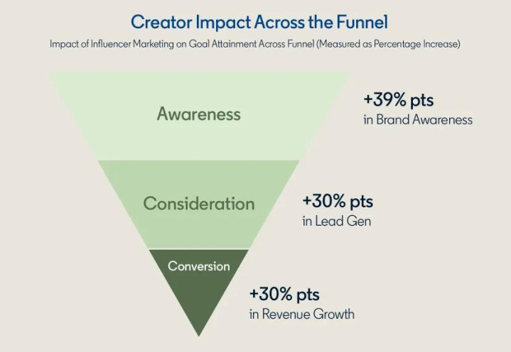 影响力营销真正的价值,在于它能贯穿整个营销流程。在传统营销漏斗模型中,创作者往往只被视为“引流工具”,负责推动兴趣阶段的传播。然而报告提出,影响者已经能够有效介入客户旅程的多个节点,从引发关注,到建立权威,再到推动信任落地。数据表明,与创作者合作的B2B营销人员在业绩方面具有明显且稳定的优势,对于希望更新营销策略的营销人员来说,影响者营销并非是可有可无的选择,它能够显著提升企业的影响力,帮助企业在营销中构建信任。