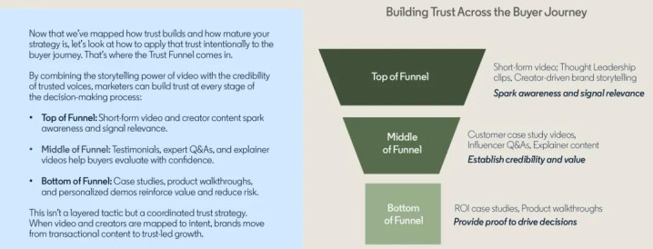 那么,企业应如何在实际营销中建立并放大这份信任?报告从视频内容、影响力合作到信任体系模型,系统呈现了三种关键路径,帮助品牌将信任转化为长期竞争力。